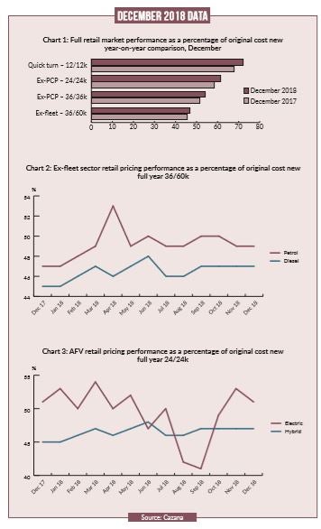 The increase in retail pricing is consistent for both fuel types, and the delta between the two in December 2018, at two percentage points, is the same as it was in 2017, confirming that there has been no punishment of used diesel values by the used car buyer.